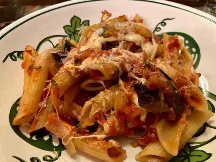 My friend, Italian-wine aficionado Ciro Pirone, recently posted a photo of pasta with zucchini on his informative Twitter feed @Vinofilosofia. It looked so appetizing that I asked him for the recipe. His response: “Senza ricetta…tutto ad occhio (No recipe, all by eye.) I sauté a little onion and then add thinly sliced zucchini, salt and pepper, and cook low, covered; halfway I add half a glass of water and let cook till they fall apart. Toss in the pasta and some parmigiano!”
